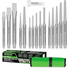 This a sixteen piece punch and chisel set. Mine seem to get converted to fifteen piece and then fourteen piece sets and so on. Here we have chisels and center punches as well as various size pin punches.